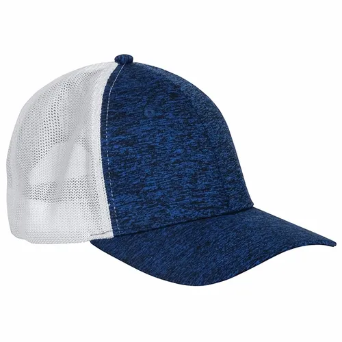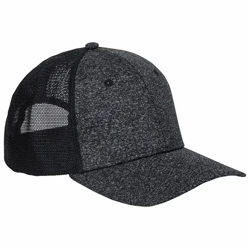Front: 97% Polyester/3% Spandex, Heather Jersey Knit Back: 100% Polyester, Soft Trucker Mesh Modern Fit: Structured, Mid-profile, Slightly Curved Bill Six-panel NO Sweat Moisture-wicking Sweatband Snapback Closure
