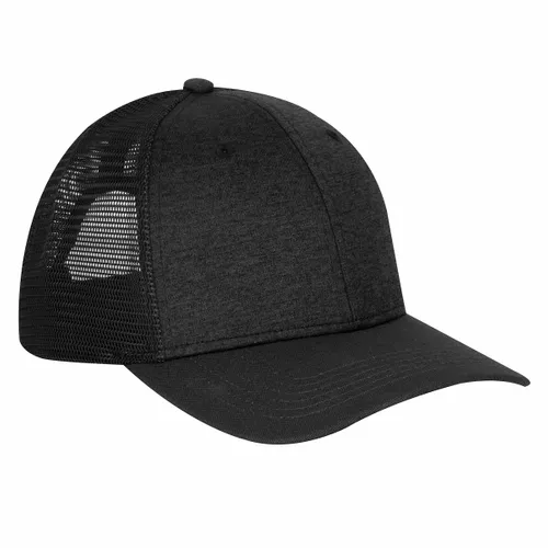 Front: 100% Polyester, Space-dyed Bill: 100% Cotton, Canvas Back: 100% Polyester, Soft Trucker Mesh Modern Fit: °Structured, Low-profile, Slightly Curved Bill, Black Underbill °Six-panel NO Sweat Moisture-wicking Sweatband Snapback Closure
