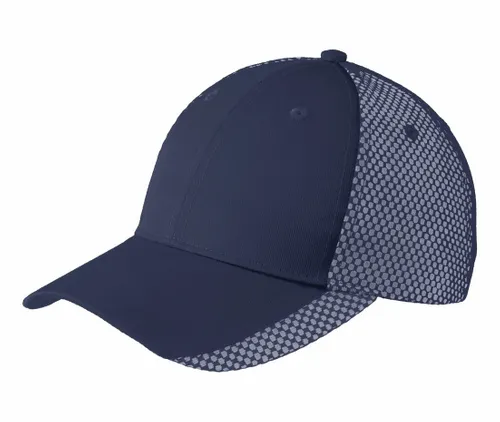 The two-tone color adds character to this ultra breathable mesh cap.| Fabric: 80/20 poly/cotton twill in front two panels and bill; 100% polyester mesh in mid and back panels Structure: Structured Profile: Mid Closure: Low-profile hook and loop with buckle
