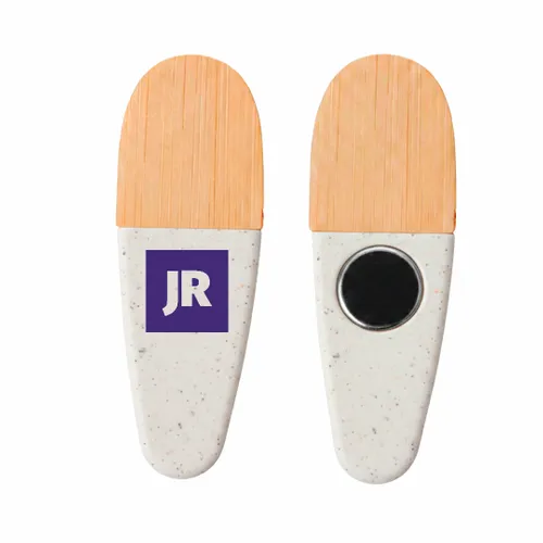 • Align your brand with sustainability using the Environmental Power Clip. This eco-conscious tool features a natural bamboo and wood grip paired with a durable plastic body, making it a perfect functional giveaway for environmentally-minded campaigns. Its built-in magnet ensures your logo stays front and center on refrigerators or office cabinets.