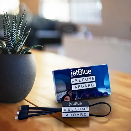 The Cinema Lightbox Cable multi charger is practical and perfect for sharing messages for any occasion. The light up message board is designed to resemble a retro mini cinema sign. Utilizing the included letter decals, you can easily personalize the lightbox with your own message. Built-in cables include: iPhone 5-pin, Micro USB, and Type-C. The connectors are compatible with a majority of the phones in the market, including Android® phones and iPhone® 5 and later models. Plus, it