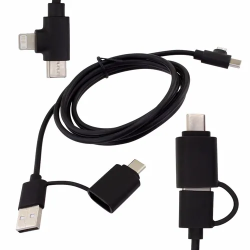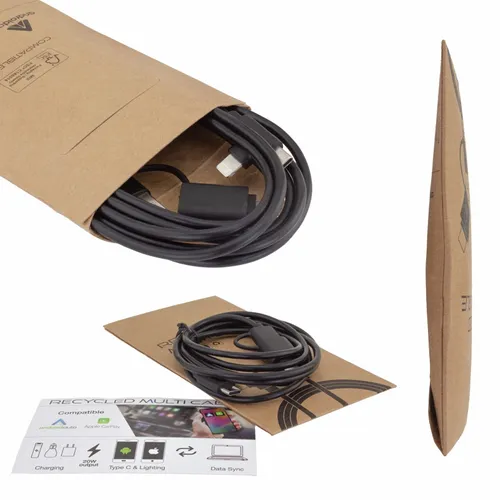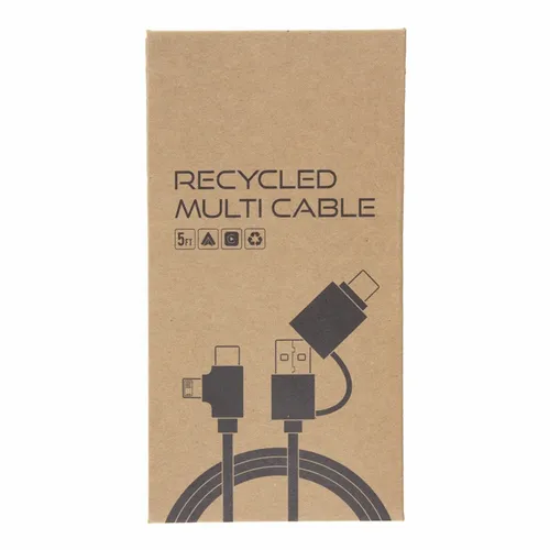 The Recycled Multi-Cable works as a charging and data cable. It helps keep dynamic business teams equipped with the right connections for today's devices. Whether at the office, on the road, or in flight this cable is an easy-to-store cable that anyone would appreciate.