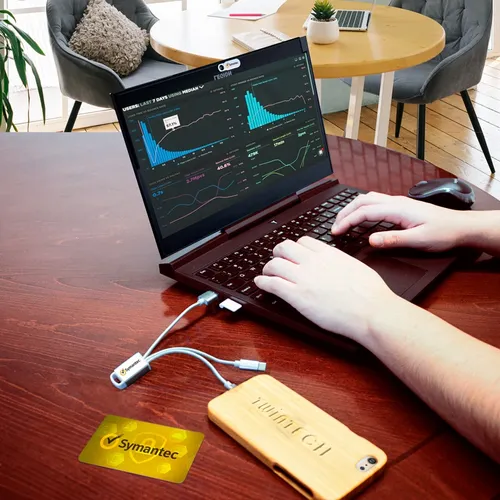 Don't get hacked! Protect your personal and professional life with our conveniently packaged security kit. We assembled crucial protective security measures any active professional would require. This kit will help you maintain visual and data privacy and is featured in a custom branded candy wrapper package. Each kit comes with a webcam cover, Connect Plus 3-in-1 cable (#2741), and RFID shield, each of which is branded for your project's needs.