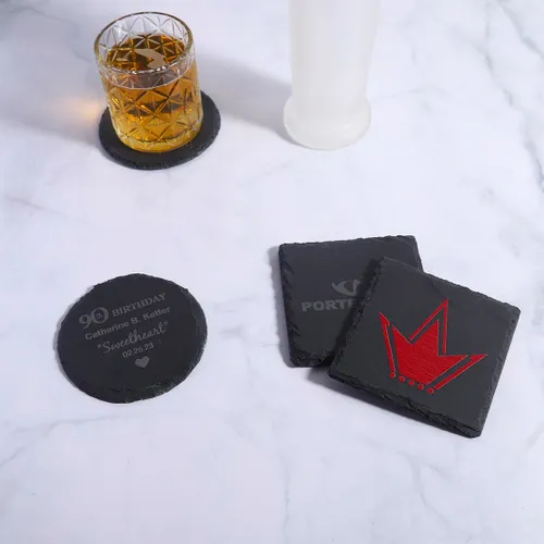 - Our stone coasters are made with 100% all-natural slate coasters that are the perfect complement to your kitchen, living, or dining room. This sturdy coaster will surely help you prevent unwanted spills and mess up your expensive furniture. Different sizes are available that perfectly fits coffee mugs, stout glasses, beer glasses, and a lot more.