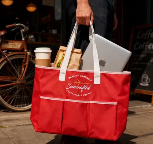 Tote Bag includes a large open main compartment, plus three front and two side pockets.