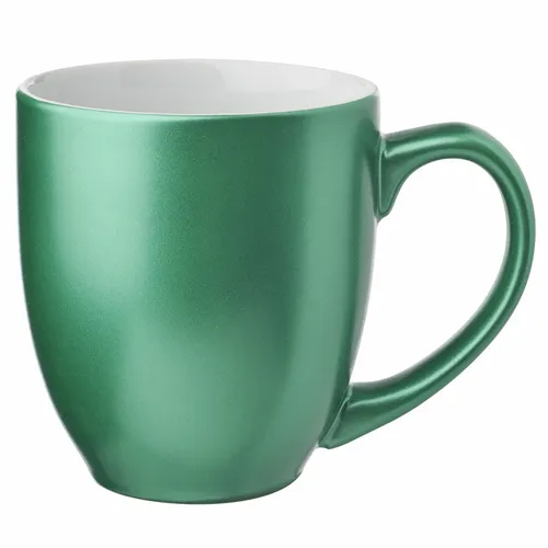 16 oz. Metallic Bistro Coffee Mugs. Smooth Molded Ceramic Composite. Metallic Color Exterior with White Color Interior. Easy Comfort Grip C-Curved Handle. High-Curved Grip for Easy Grab-n-Go Handling. Recommended Hand Wash Only