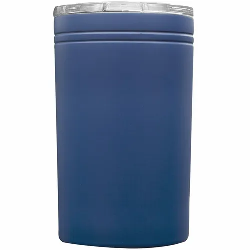 12 oz Stainless Steel Travel Mug. Clear Plastic Lid. Double Wall Vacuum Insulated. Matte Color Coating. BPA free. Keep drinks Hot for up to Approx. 3 hours. Keep drinks Cold for up to Approx. 5 hours
