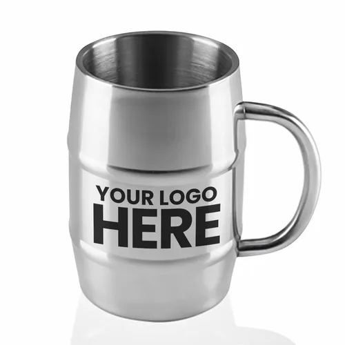 Large 17 oz Stainless Steel Barrel Mugs with Handle. Double Wall Stainless Steel. Brushed Finish