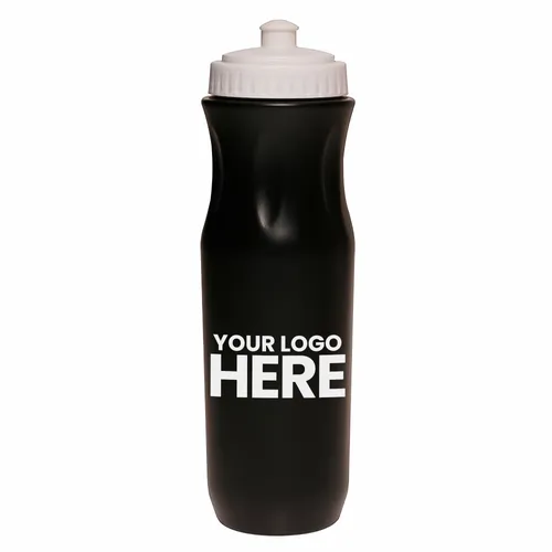 Plastic Sports Bottles. Push Top Lid. Black Screw-On Cap. Holds Up to 26 Ounce of Liquid