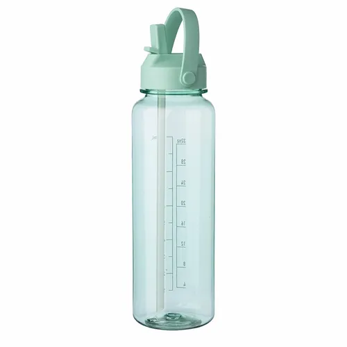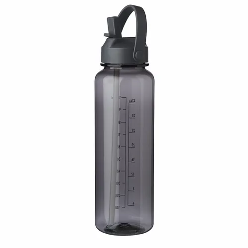 40 oz. Capacity. Screw On Plastic Lid with Straw Included. Capacity Measurements in Ounces on Side. Retractable Suction Nozzle. Carrying Handle. Single Wall PCTG Plastic