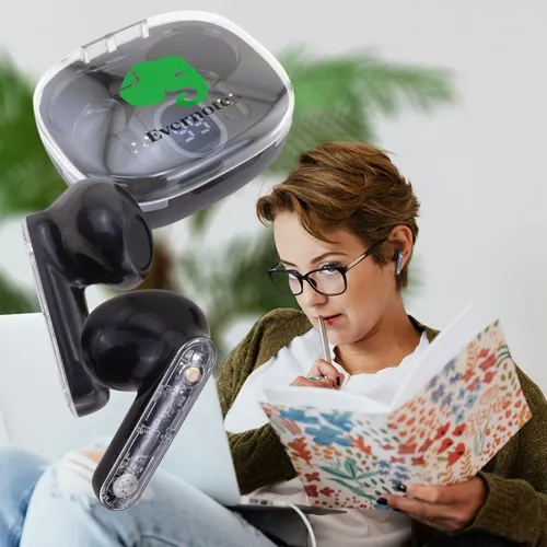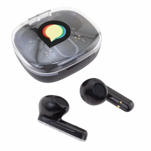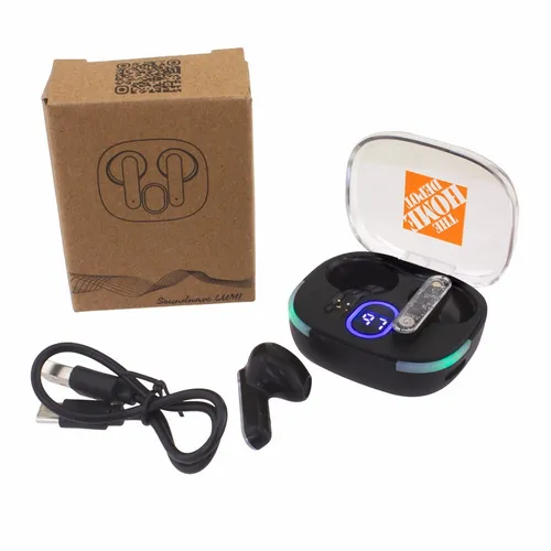 Soundwave Lumi wireless earbuds have a fun clear top case with decorative colorful light-up accents. Easily check the power level from its bright LED display. Each earbud has a clear side panel that displays the actual technology that delivers premium sounds for work, entertainment, and calls.