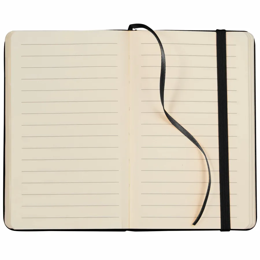 The 3.5 x 5.5 Recycled PET Pocket Bound Journal is a compact and eco-friendly solution for note-taking on the go. Featuring a durable, hardbound cover made from 100% recycled PET, this journal includes 80 sheets of recycled, lined, and perforated pages for easy tear-out. A color-matching ribbon page marker and elastic closure keep your notes secure and organized. By choosing this notebook, you’re making a positive impact on the environment through a partnership with 1% For The Planet, as a portion of each sale supports environmental nonprofits.