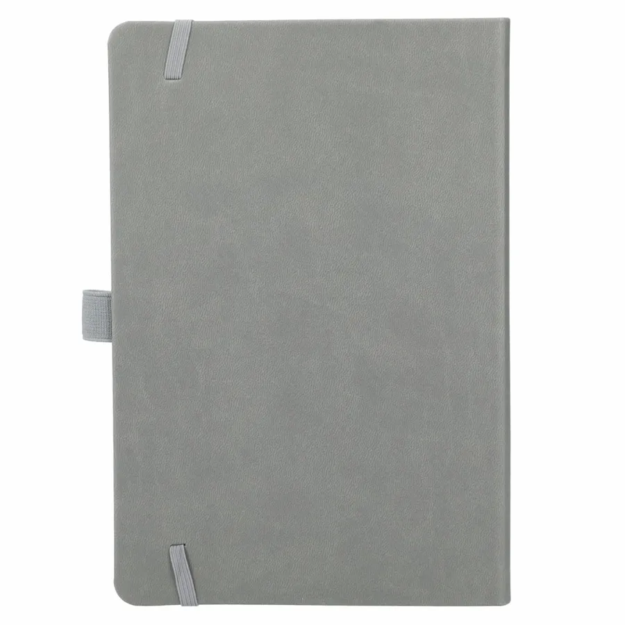 The 5.5 x 8.5” Mano Recycled Hard Bound Journal features a 30% recycled post-consumer polyester+ 70% polyurethane cover with 80 pages of recycled cream lined paper. Includes document pocket, color matching ribbon page marker, elastic band and pen loop.