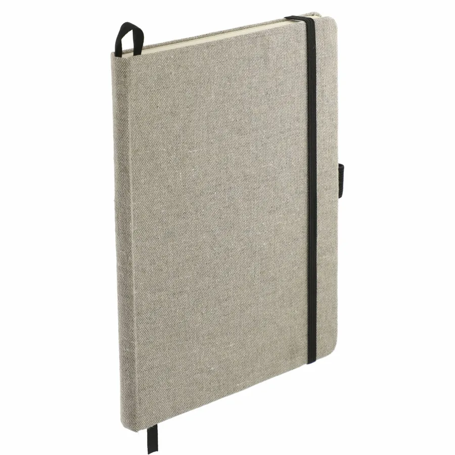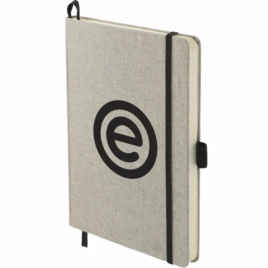 The 5.5 x 8.5 Recycled Cotton Bound Journal is perfect for all of your notetaking needs. Features a hard cover made from recycled cotton. Natural color elastic closure, pen loop and ribbon page marker. 80 sheets of FSC Mix cream lined paper. Back document pocket. FSC label printed inside. Through a partnership with 1% For The Planet, one percent of sales of all EcoSmart products are donated to environmental nonprofits.