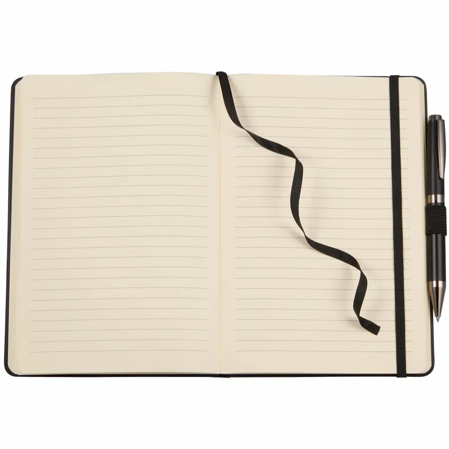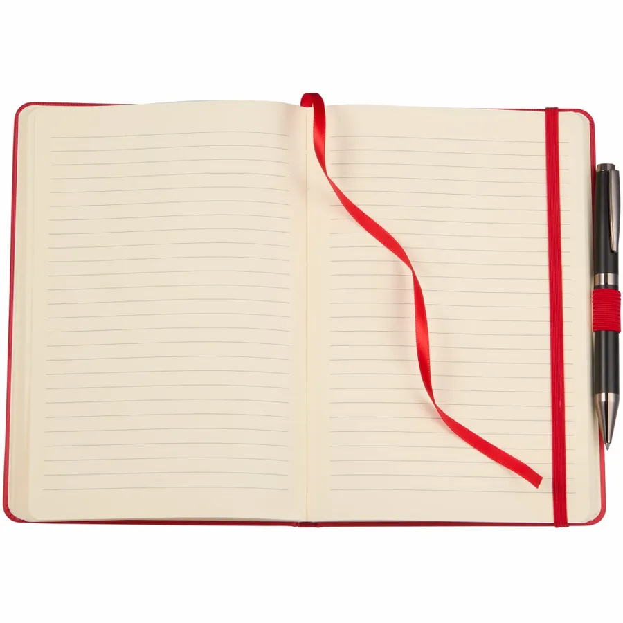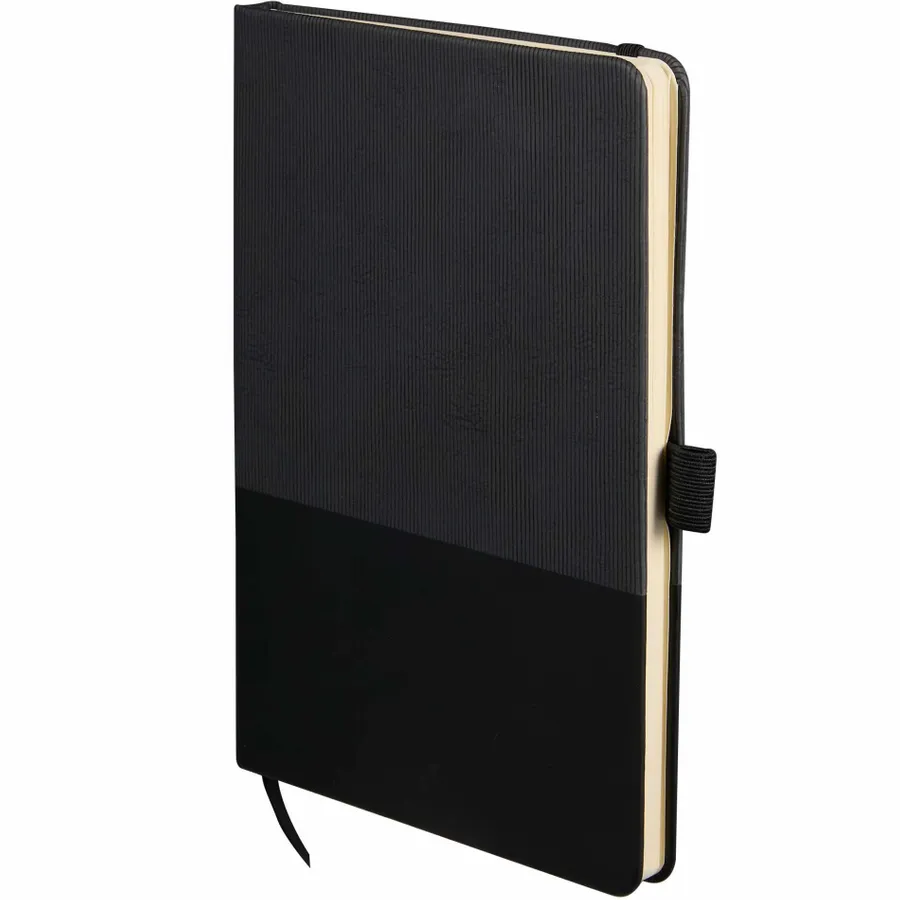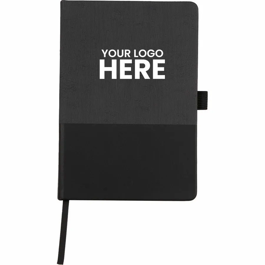 The 5.5 x 8.5 FSC Recycled Ribbed Bound Journal combines sustainable materials with a stylish design, featuring a hardbound cover made from 30% recycled post consumer polyester and polyurethane with a unique ribbed texture. This journal includes 80 sheets of FSC recycled, perforated paper, along with a color-matching ribbon page marker, elastic pen loop, and secure elastic closure. The inside back document pocket offers additional storage, while the JournalBooks logo embossed on the back adds a subtle touch of branding. Pen is not included. By choosing this notebook, you’re making a positive impact on the environment through a partnership with 1% For The Planet, as a portion of each sale supports environmental nonprofits.