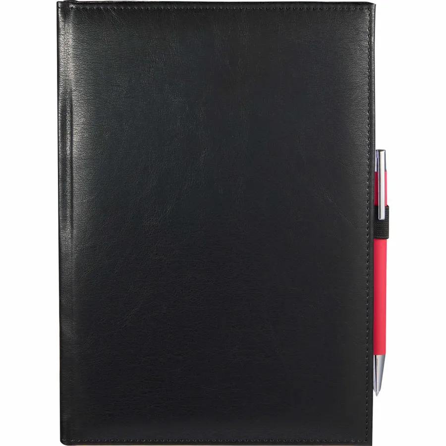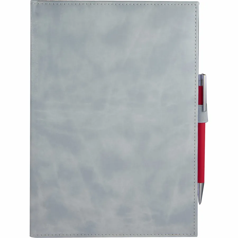 The 7 x 10 FSC Recycled Morano Large Journal features a marbled cover crafted from 30% recycled post-consumer polyester and 70% polyurethane. Inside, it includes 128 sheets of lined FSC recycled paper, offering a smooth, eco-conscious writing experience. Two ribbon page markers help you keep track of important notes, while the color-matching pen loop adds convenience and style. With the JournalBooks logo embossed on the back cover, this journal is both professional and environmentally friendly. Pen is not included. By choosing this notebook, you’re making a positive impact on the environment through a partnership with 1% For The Planet, as a portion of each sale supports environmental nonprofits.