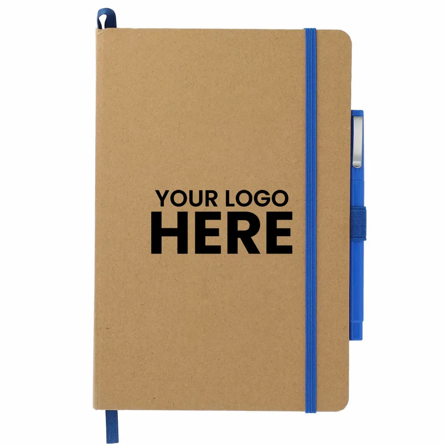 This Eco Color Bound Journal Set includes (2800-41) Eco Color Bound Journal and (6620-31) Ambassador Square Ballpoint pen. The Journal features a recycled paper hard bound cover, color accent painted edge pages, and color matching built-in elastic closure and pen loop. This specialty notebook includes a ribbon page marker, expandable accordion pocket, and 80 sheets of lined paper. Through a partnership with 1% For The Planet, one percent of sales are donated to environmental nonprofits. This item cannot be configured online. Contact us to order. Due to the nature of the material, there may be color variances.