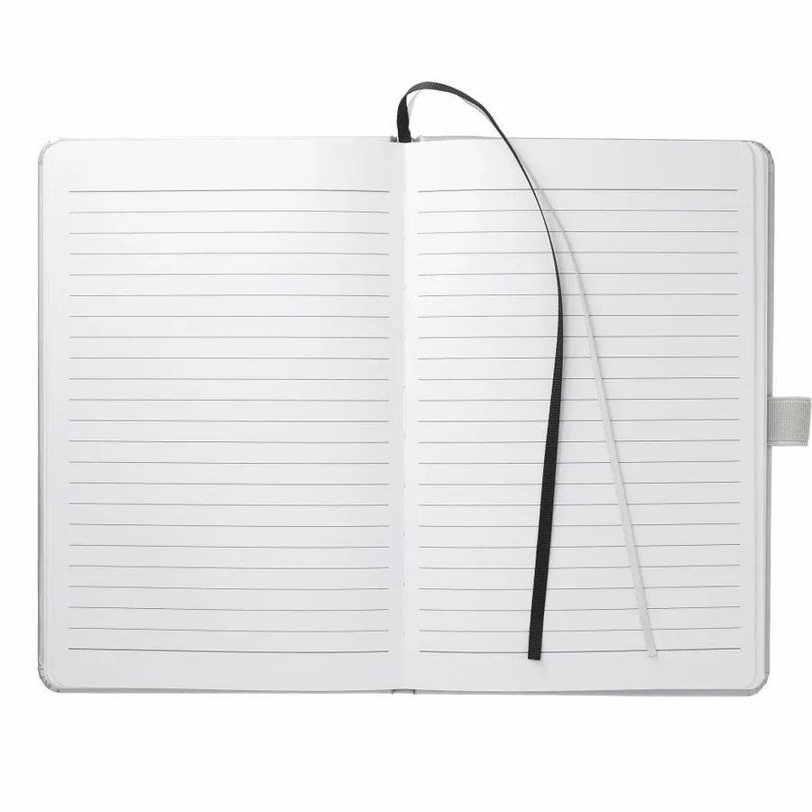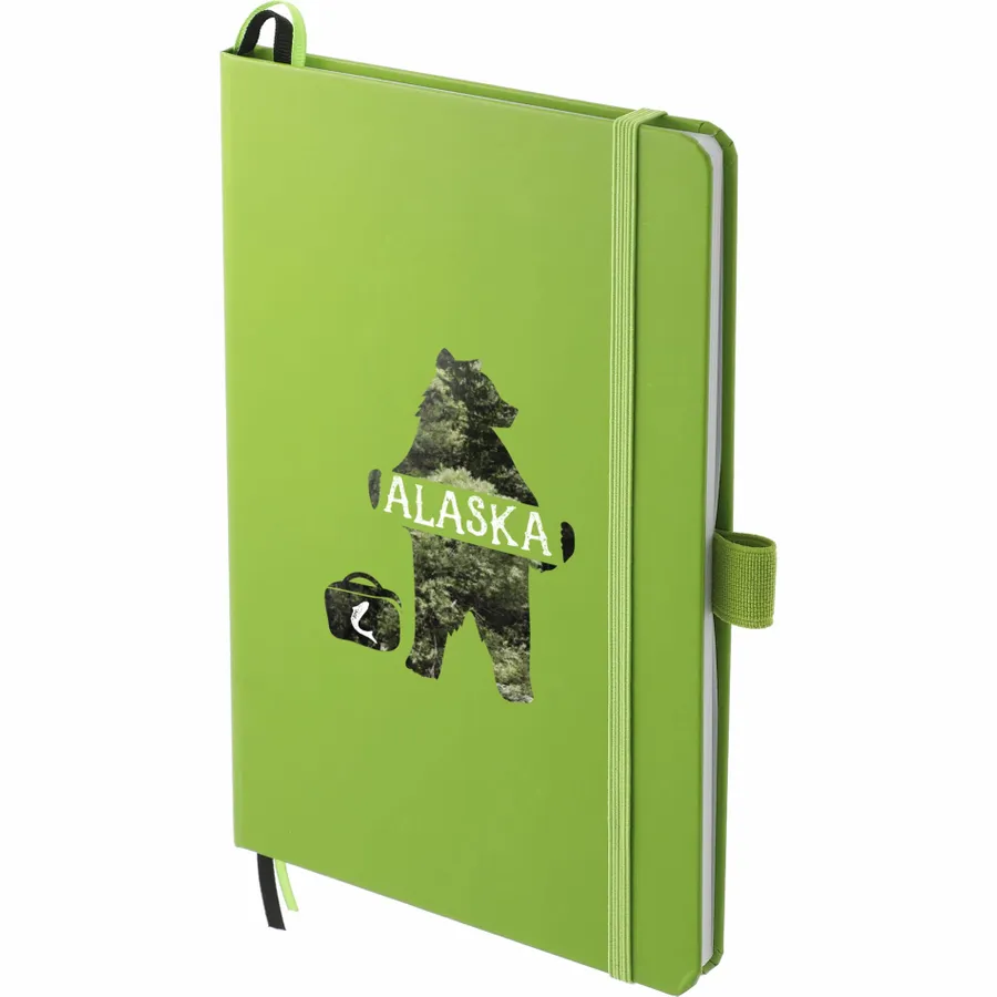 The 5.5 x 8.5 FSC Mix Bound Journal features a FSC-certified paper hard cover with 80 sheets of white FSC-certified, soy-based ink lined paper. Includes color-matching elastic closure, pen loop and ribbon page marker. Through a partnership with 1% For The Planet, one percent of sales of all EcoSmart products are donated to environmental nonprofits. Digital Inkjet not available on Silver color.