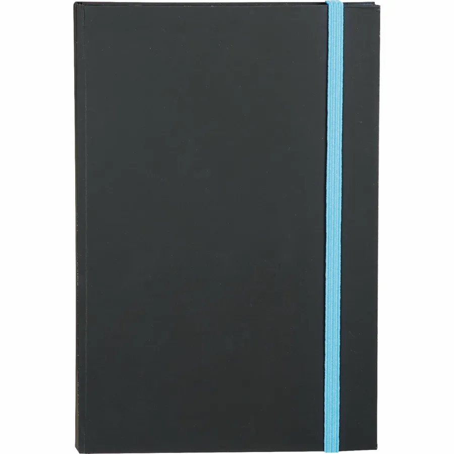 The 5.5 x 8.5 FSC Mix Color Pop Bound Journal features a hard cover with a soft matte black cover to highlight the most subtle or colorful logos. This custom Journal includes 96 sheets of FSC Mix cream lined paper with bright colored edges and corresponding color elastic closure.