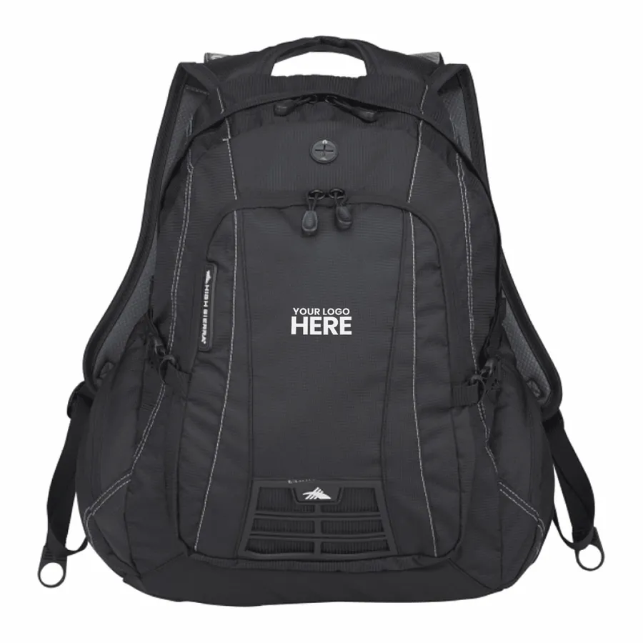 The High Sierra Magnum 15 Computer Backpack features a padded interior computer sleeve, with a back-access zipper, that holds up to 15 inch laptop. Also comes with a deluxe organizer with pen pockets, a zippered mesh pocket and key fob and a Tricot-lined pocket with a headphone port. Zippered side pockets for accessories. Yoke-style, S-shaped Vapel™ mesh Airflow™ padded backpack straps with a suspension system, cell phone pocket and an integrated grab handle. Features a Vapel mesh Airflow padded back. Includes lifetime warranty.