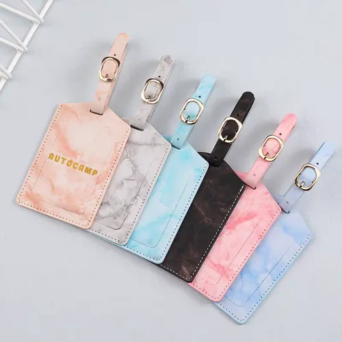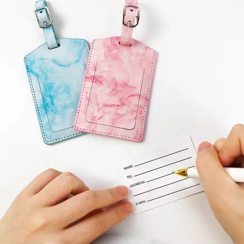 • Flip Marbling Luggage Tags - Introducing our Flip Marbling Luggage Tags – the perfect blend of style and functionality. Crafted from premium quality PU Leather, these tags add a touch of elegance to your travel gear. Designed to withstand the rigors of travel, they feature a secure buckle strap and a privacy flap to protect your personal information. Elevate your journey with our Luxury Leather Luggage Tags and travel with confidence and style.