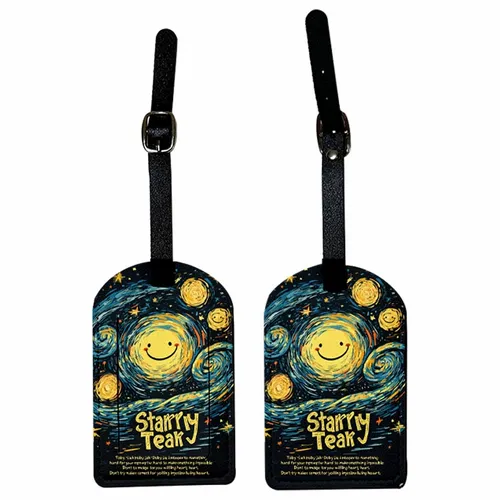 Our luggage tags are crafted from high-quality materials such as PVC, leather, or acrylic, depending on the product.