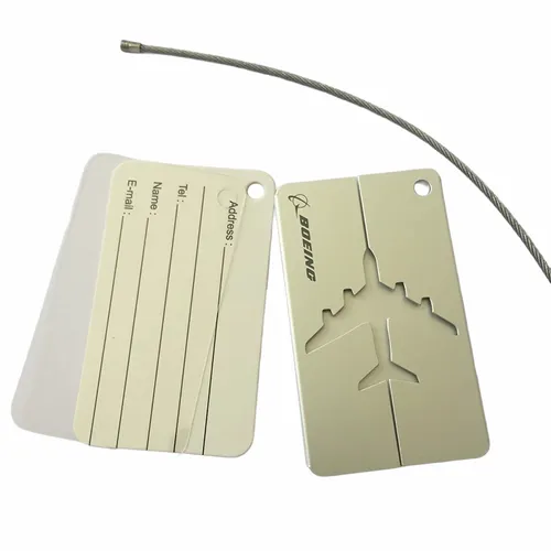 • Rectangle Aircraft Aluminum Luggage Tag - Introducing our Rectangle Aircraft Aluminum Luggage Tag – the perfect blend of style and functionality. Crafted from premium Aluminum Alloy, these tags add a touch of elegance to your travel gear. Designed to withstand the rigors of travel, they feature a secure buckle strap and a privacy flap to protect your personal information. Elevate your journey with our Luxury Leather Luggage Tags and travel with confidence and style.