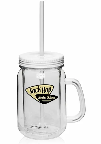 Introducing our 17 oz. Drink Delights Mason Jars with Straw, the perfect blend of charm and modern functionality for your favorite beverages. Crafted with premium quality, these mason jars feature double wall insulation, keeping your drinks at the perfect temperature for longer. The clear outside showcases the beverage inside, while the colored inside adds a pop of vibrancy to your sipping experience. With a solid color lid and matching handle, these jars exude elegance and convenience. The screw-on lid ensures a secure seal, preventing spills while you're on the move. Sip in style with the included matching color straw, providing a comfortable and mess-free drinking experience. Plus, our mason jars are BPA-free, ensuring your health is our top priority. Please note that these jars are not microwave safe. Elevate your beverage enjoyment with our Drink Delights Mason Jars , perfect for picnics, parties, and everyday use.