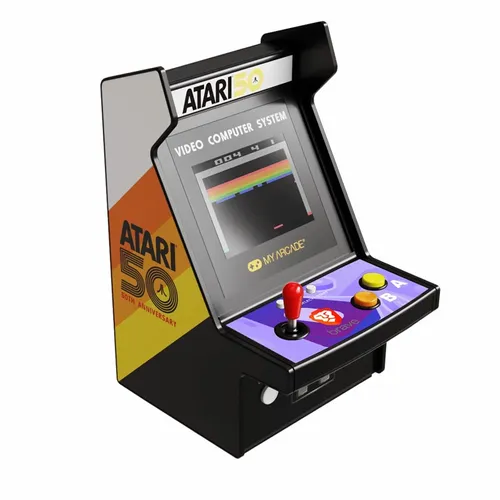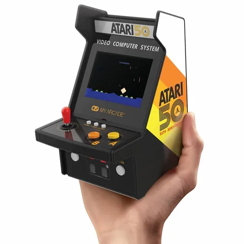 2.75" full-color back-lit display, featuring eye-catching artwork inspired by the nostalgic PAC-MAN arcade cabinet! Play your favorite game on the go and relive those classic arcade moments anytime, anywhere. Whether you power it with 4 AA batteries (not included) for portable fun or connect it with a Type-C cable (not included) for stationary play, this device is a must-have for any game room, office, or display case. Bring a touch of retro gaming magic to your space.