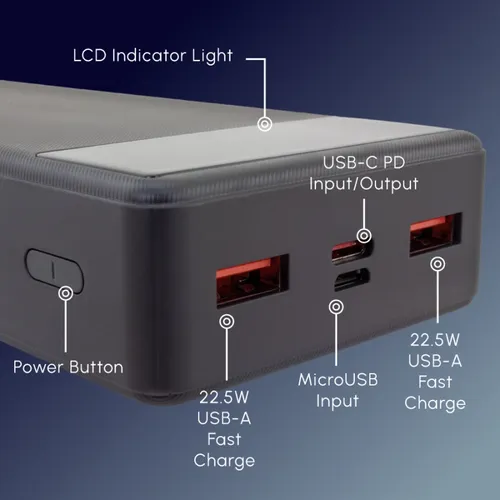 Equipped with a high-capacity 20,000mAh battery, this power bank can provide multiple charges throughout a busy workday. With a sleek and compact design, this power bank is the perfect companion for work, a long flight, or a weekend adventure.