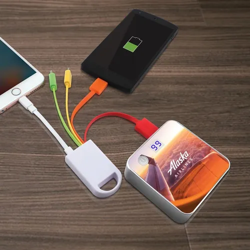 This metal portable USB charger features a 7800 mAH battery, two USB charging ports, and glows with your logo when in use. Perfect for Smart Phones, Tablets, and more! Charge your Smartphone more than three times with this portable charger. Features: * 7800 mAH battery, Battery Cell inside the charger is UL listed * On / Off Button * Digital Capacity Display * Glowing Logo * 2 x USB Charging Port Includes: * Portable Charger * 1 x Micro USB * Quick Start Guide * Black Micro Fiber Pouch. * Black Window Box Packaging Connect your device to the charger in one of two ways: * The included micro USB charging cable * The USB charging cable that came with the purchase of your portable device Specifications * Battery Capacity: 7800mAh * DC Input: 5v / 1A * DC Output: 1A-1.5A * Charge by USB port in 10+ hours depending on USB port power level PLEASE NOTE Due to modifications to the IATA Dangerous Goods Regulations and the corresponding change to the UN Classification for power banks. The air shipments are subject to higher freight rates and an additional $55(X) per carton processing fee.