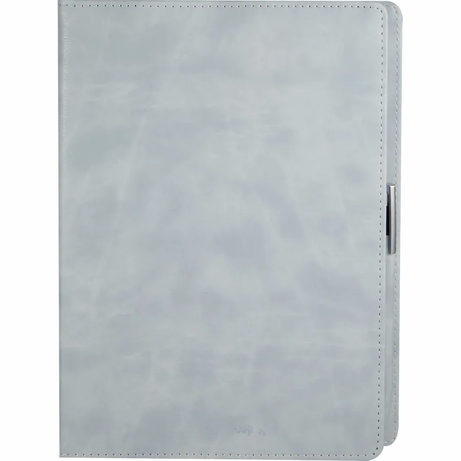 The 7 x 10 FSC Recycled Morano Refillable Journal combines style and sustainability, featuring a marbled cover crafted from 30% recycled post-consumer polyester and 70% polyurethane. This refillable journal includes an FSC recycled insert with 224 pages, making it a versatile choice for long-term use. Designed for convenience, it features two business card slots, two ribbon page markers, and a pen holder, keeping your essentials organized. Pen is not included. The JournalBooks logo is embossed on the back cover as a subtle detail. By choosing this notebook, you’re making a positive impact on the environment through a partnership with 1% For The Planet, as a portion of each sale supports environmental nonprofits.