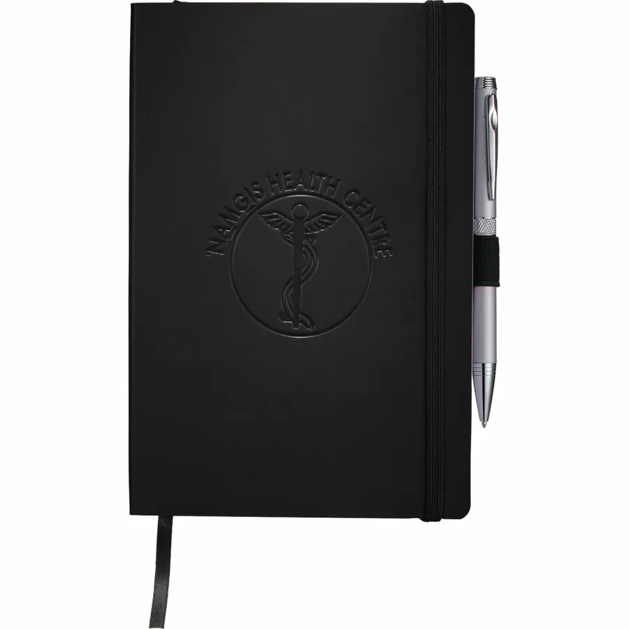 The 5.5 x 8.5 FSC Mix Nova Soft Bound Journal features a soft cover with built-in elastic closure. This specialty notebook offers a ribbon page marker, expandable accordion pocket and pen loop. The Nova Soft Bound Journal includes 96 sheets of lined white FSC Mix paper. Pen not included.