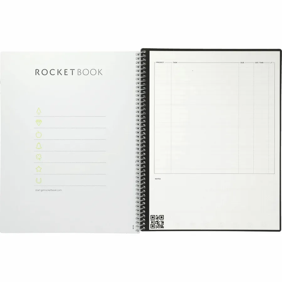 The Rocketbook Fusion is designed for every classroom, office, and personal mission. The Fusion is a reusable pen and paper notebook with seven different page templates that connect to your favorite cloud services. 42 futuristic pages are packed with calendars, to-do lists, and notetaking layouts. And of course the Fusion is made with patented reusable Core technology. The synthetic paper allows you to write smoothly with a Pilot FriXion pen, then magically wipe clean with a damp cloth to reuse again and again! Use the Rocketbook app to blast your notes, plans, lists, and big ideas to the cloud for proper organization. Then, erase and reuse your Fusion for your next adventure! This set includes Rocketbook Fusion Notebook, Pilot Frixion Erasable Pen, microfiber wipeable cloth, instruction manual.