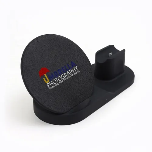 Busy business teams need efficiency, and the 3-in-1 Fast Wireless Charger is a better way to simplify the life of productive team members; it will simultaneously charge a compatible phone, earbud case, and smartwatch. These are easily the most common devices used today, and this will help centralize these important charging needs. Plus, it will help reduce desktop clutter, avoid tangled up device cords, and simplify anyone's busy day at home or office. smart device that l