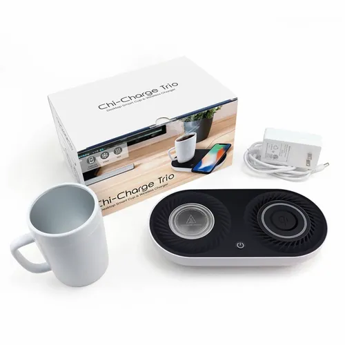 The Chi-Charge Trio is one of the smartest desktop companions anyone would love to have at home or office. It helps keep wirelessly charged devices powered up and regulates the temperature of hot and colds. It is easy to use and comes with a mug too.