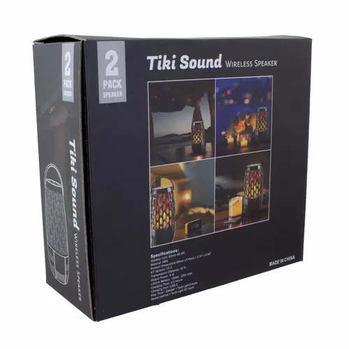 A fun pair of wireless speakers with different lighting modes and built-in sounds. Each has a handle, to easily suspend on a hook, and an attachable pole for placing them to the ground. When paired together, they support a True Wireless Stereo (TWS) function.